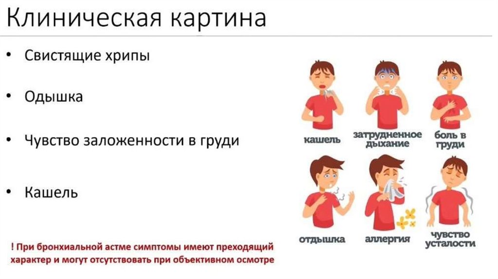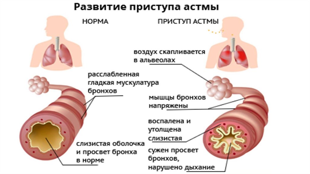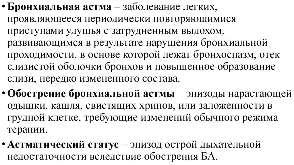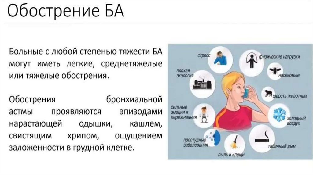 • Обострение бронхиальной астмы – эпизоды нарастающей