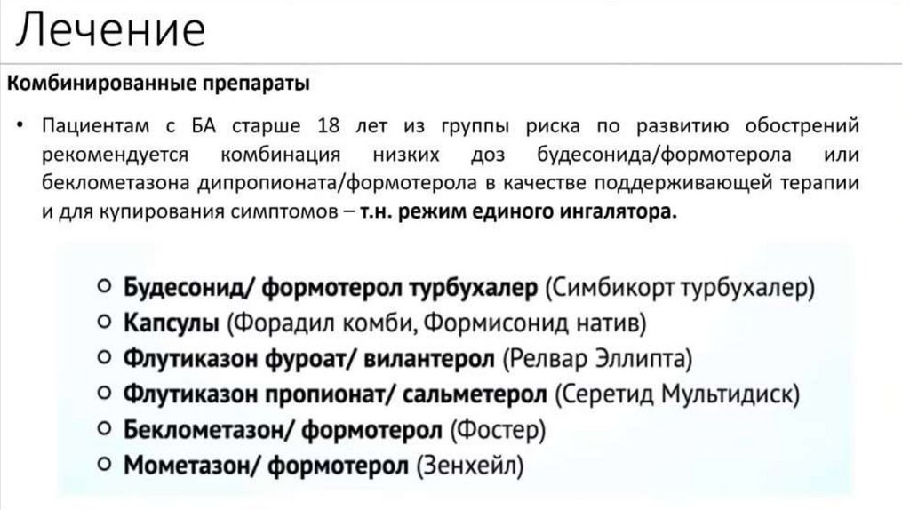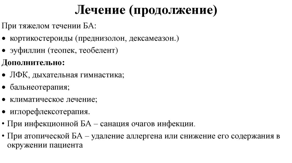 • При атопической БА – удаление аллергена или снижение его содержания в