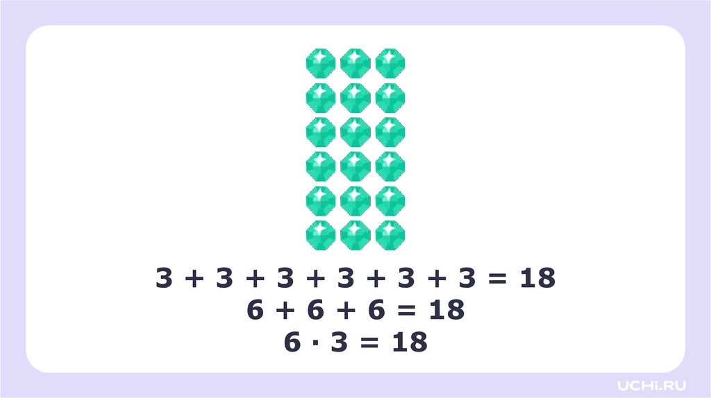 3 + 3 + 3 + 3 + 3 + 3 = 186 + 6 + 6 = 18