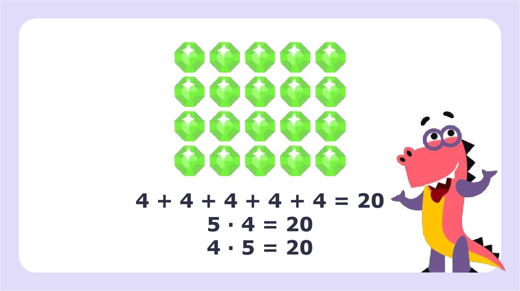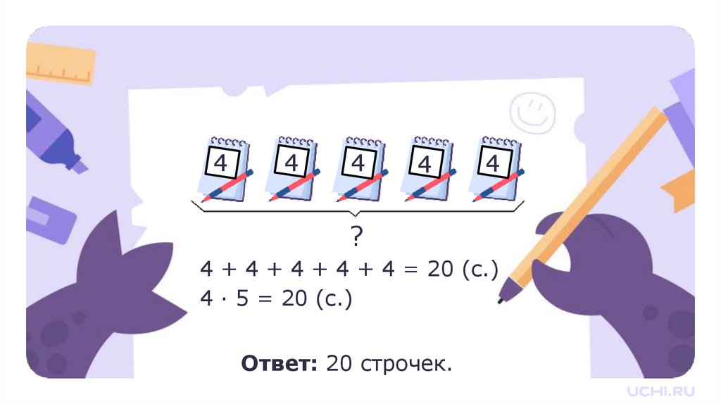 4 + 4 + 4 + 4 + 4 = 20 (с.)