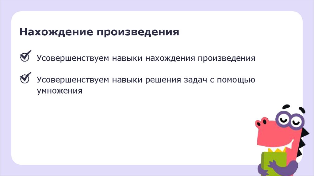 Нахождение произведенияУсовершенствуем навыки нахождения произведения