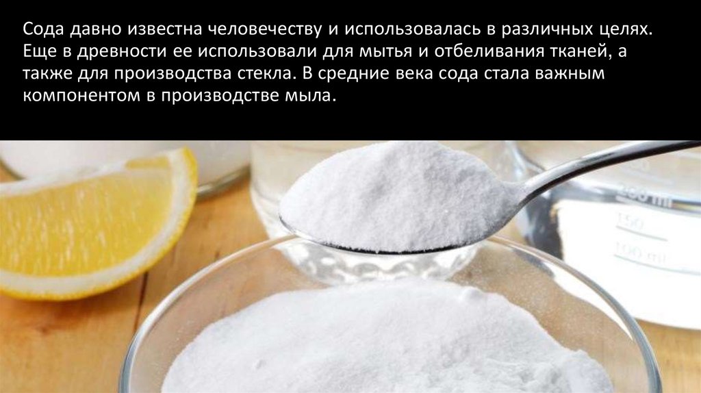 Сода давно известна человечеству и использовалась в различных целях.Еще в древности ее использовали для мытья и отбеливания тканей, а