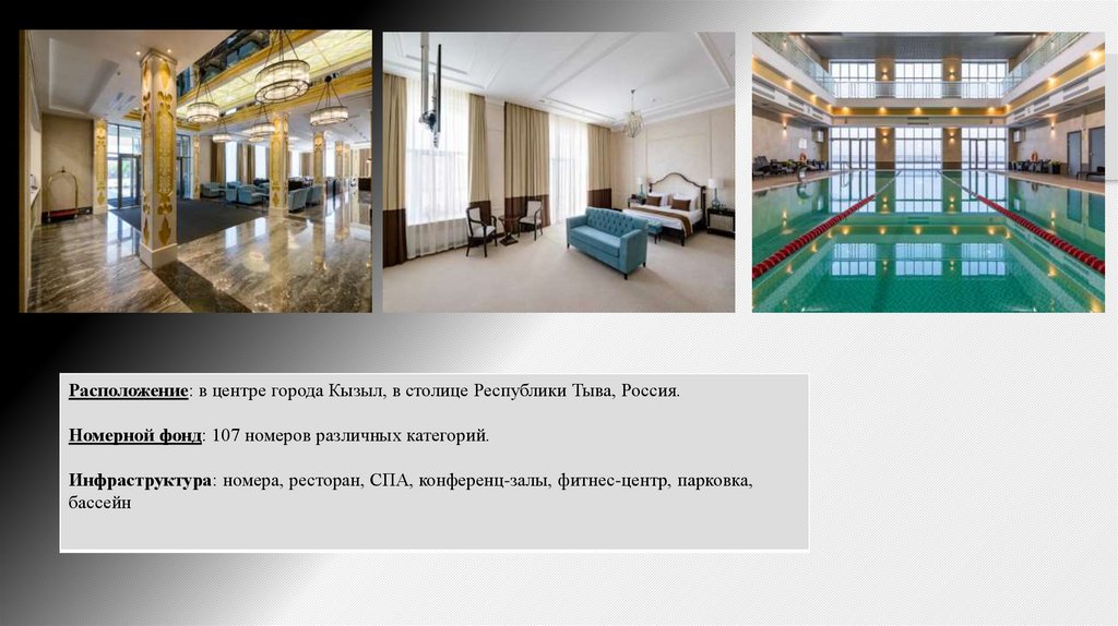 Расположение: в центре города Кызыл, в столице Республики Тыва, Россия.Номерной фонд: 107 номеров различных категорий.