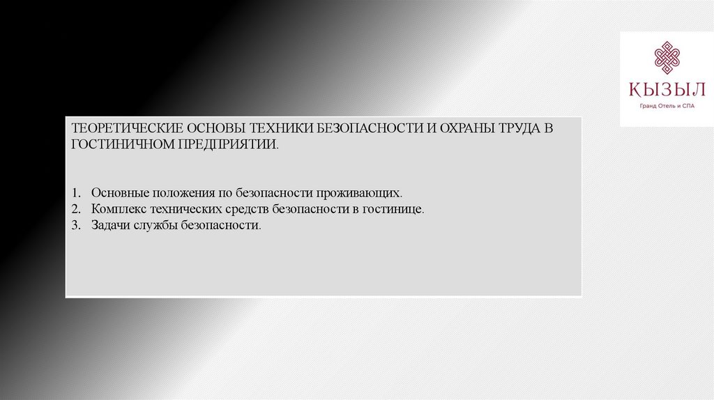 ТЕХНОЛОГИЯ ОБЕСПЕЧЕНИЯ БЕЗОПАСНОСТИ В ГОСТИНИЦЕКЫЗЫЛ ГРАНД ОТЕЛЬ И СПА.