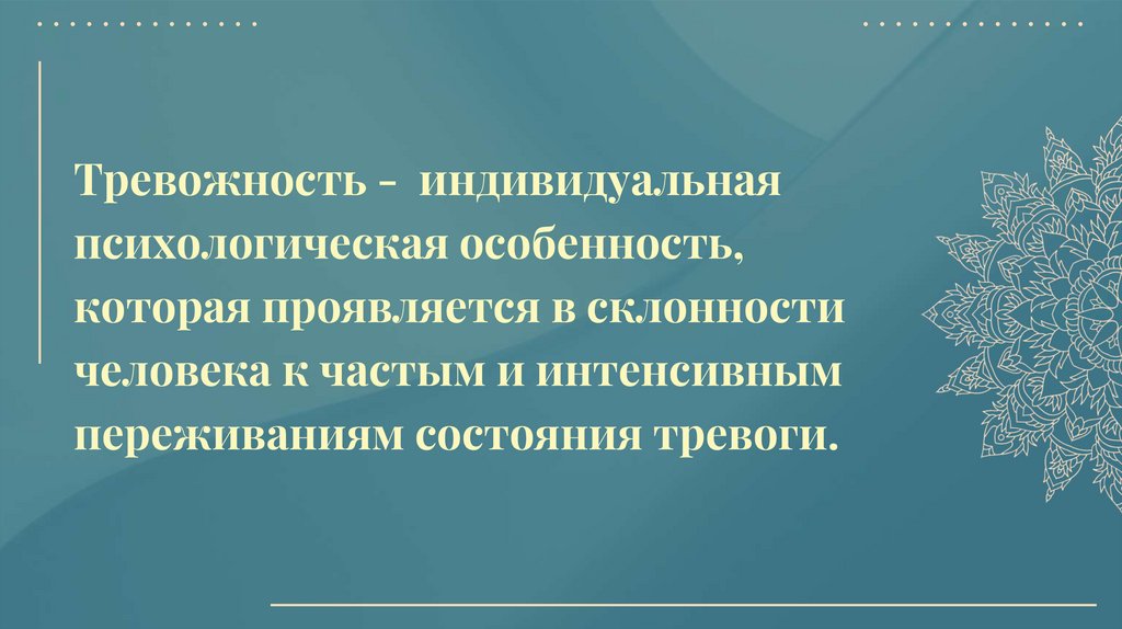 Тревожность - индивидуальнаяпсихологическая особенность,