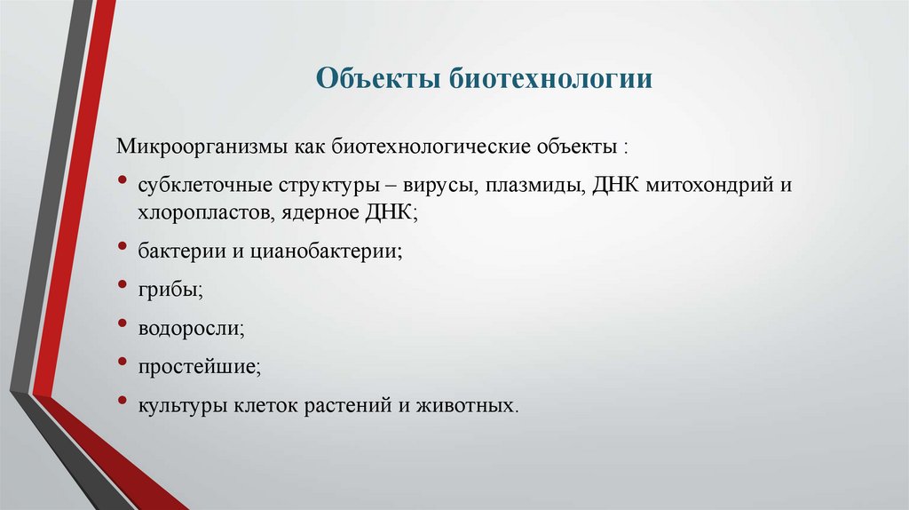 Объекты биотехнологииМикроорганизмы как биотехнологические объекты :