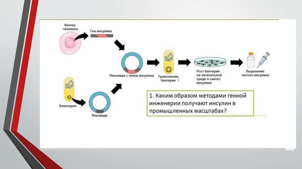 • 2. Выделяют участок с генном, отвечающим за синтез инсулина.