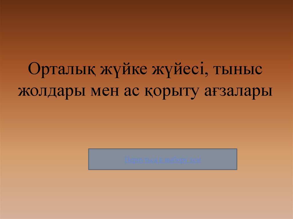 Орталық жүйке жүйесі, тынысжолдары мен ас қорыту ағзалары