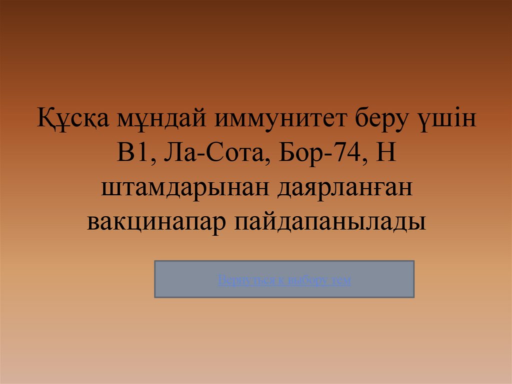 Құсқа мұндай иммунитет беру үшінВ1, Ла-Сота, Бор-74, Н