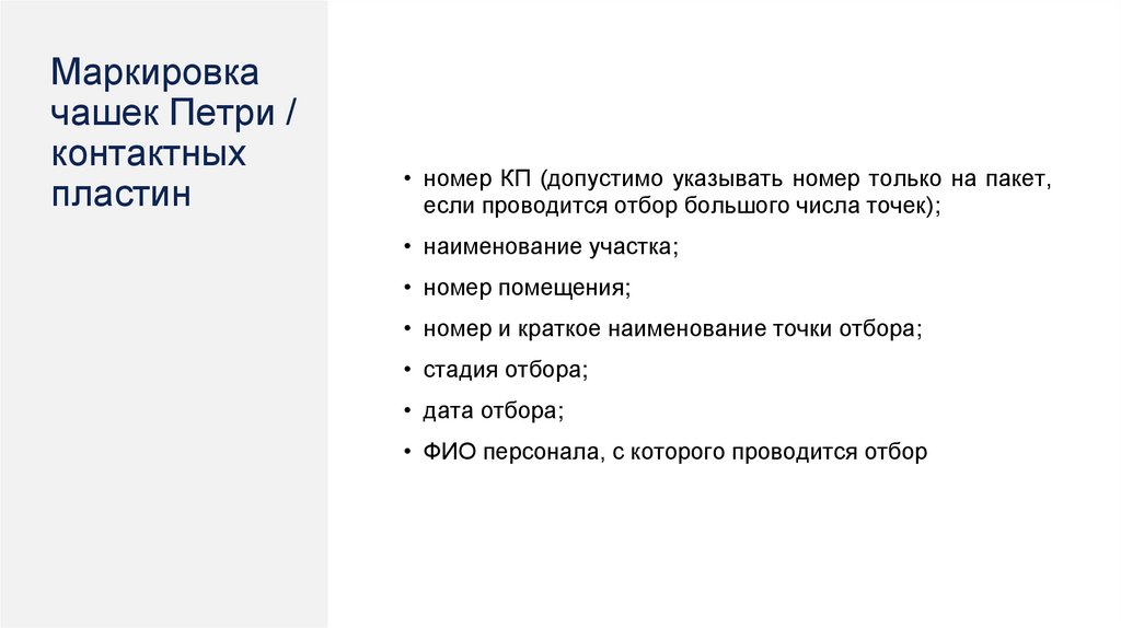 проб, вскрыть упаковку, промаркировать чашки этикетками или нанести
