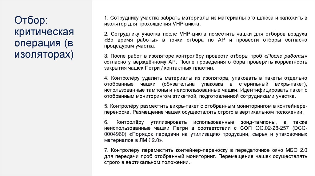 3. После работ в изоляторе контролёру провести отборы проб «После работы»