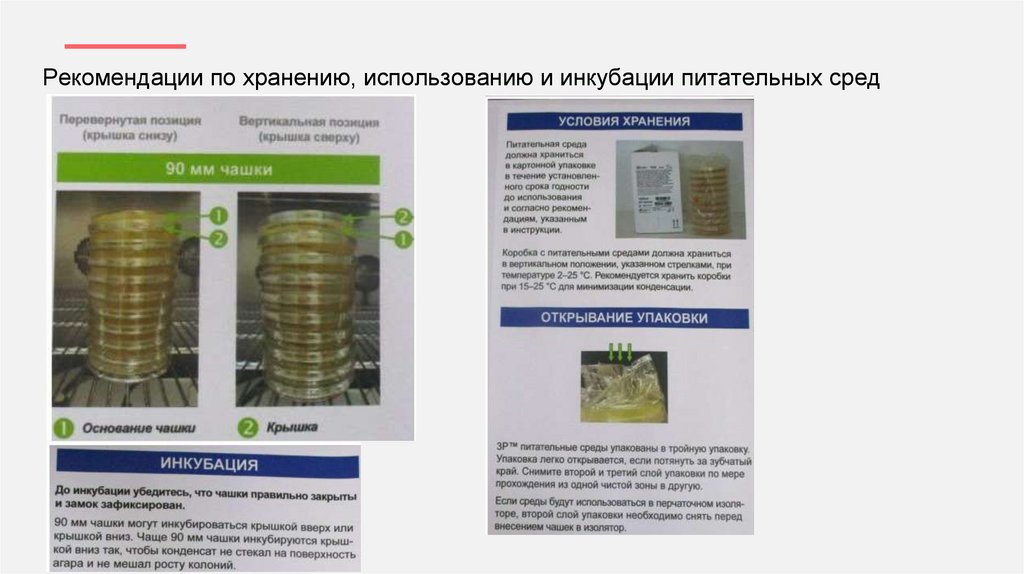 Рекомендации по хранению, использованию и инкубации питательных сред18.
