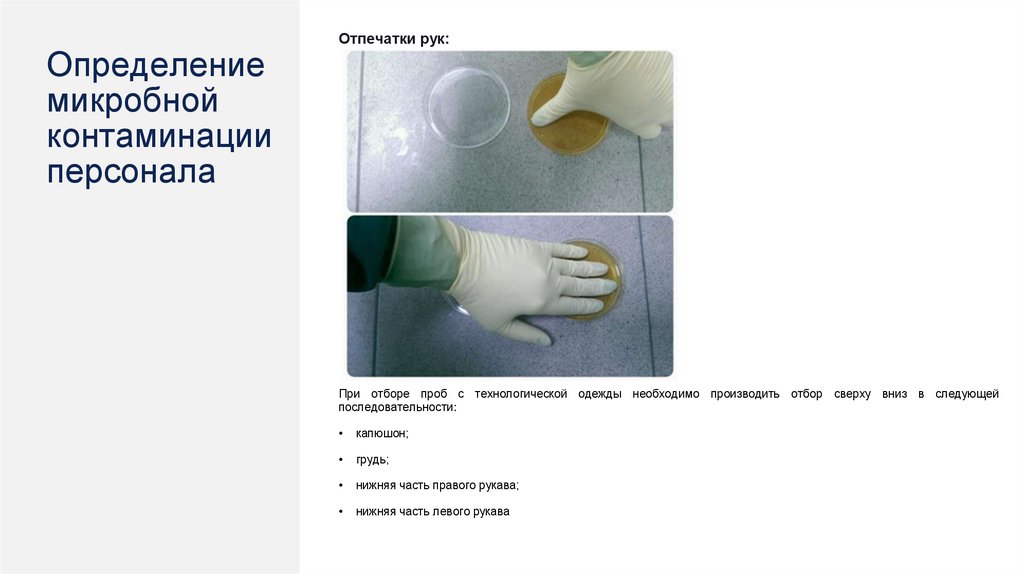 Контроль микробной контаминации поверхностей производственных помещений, персонала