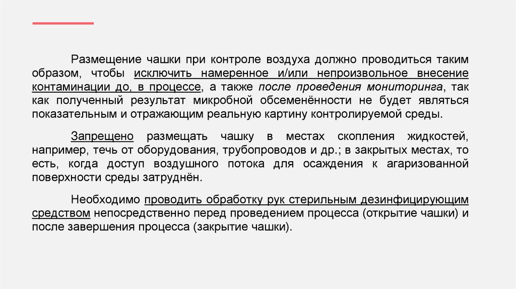 для передачи проб отобранный мониторинг. Перемещение чашек осуществлять