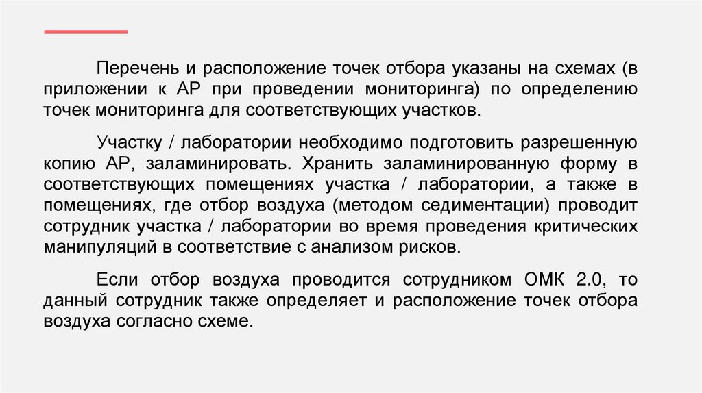 3. Сотруднику участка/лаборатории провести отбор точек согласно