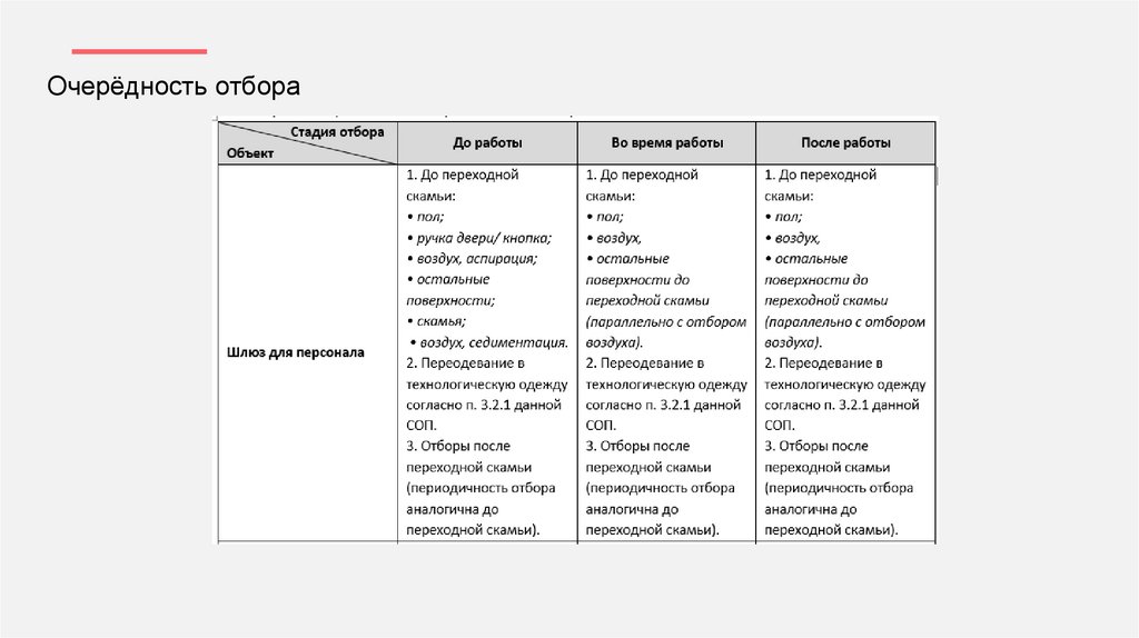 При отборе проб с технологической одежды необходимо производить отбор сверху вниз в следующей