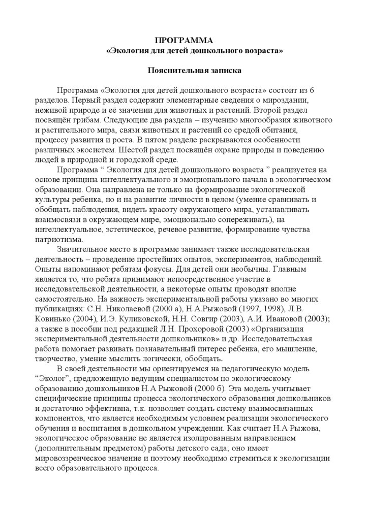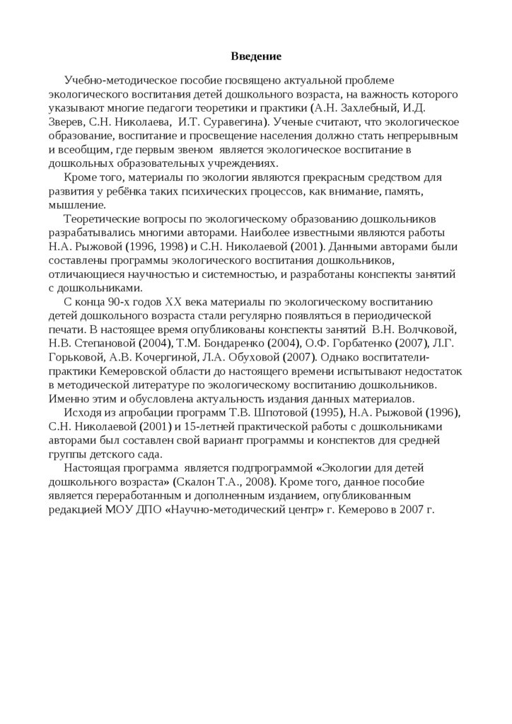 Н.А. Рыжовой (1996, 1998) и С.Н. Николаевой (2001). Данными авторами были