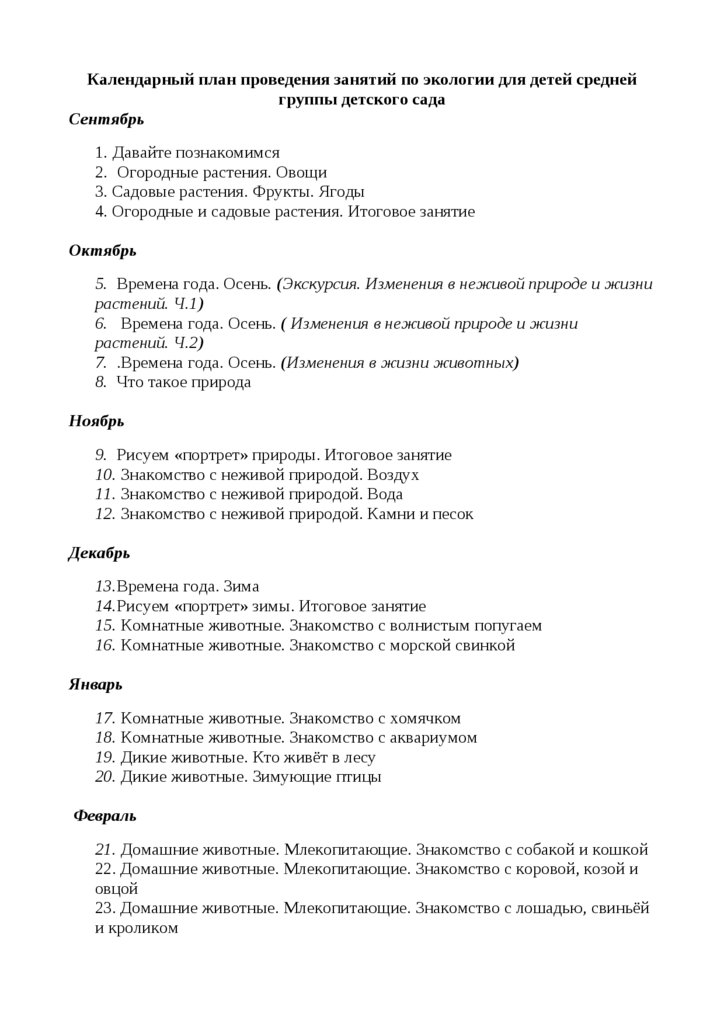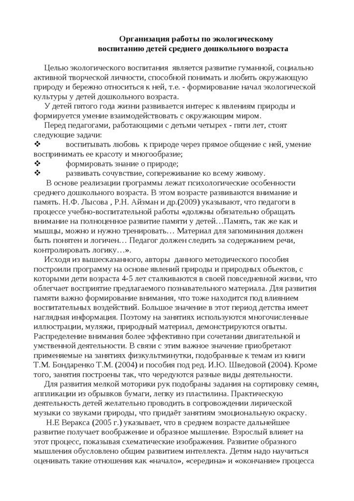 Организация работы по экологическомувоспитанию детей среднего дошкольного возраста