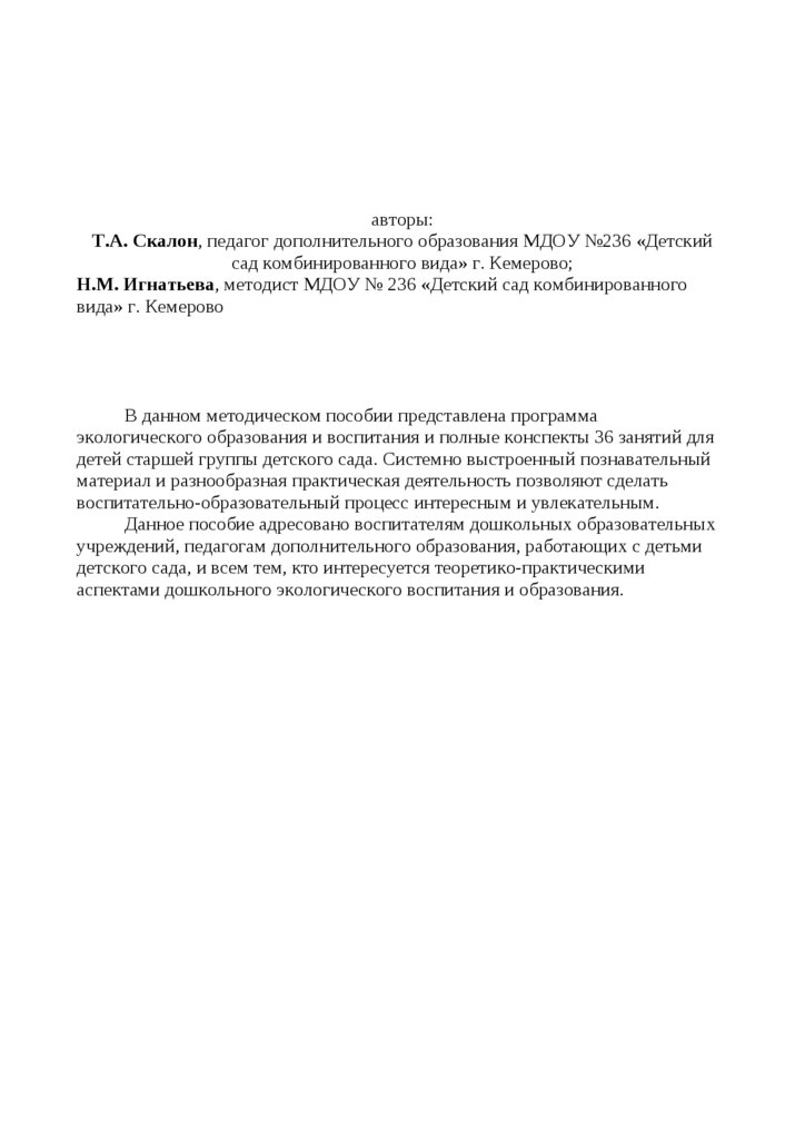 С.Н. Николаевой (2001) и 15-летней практической работы с дошкольниками