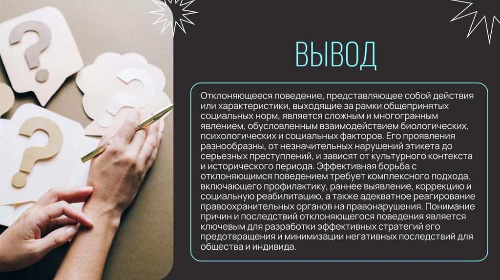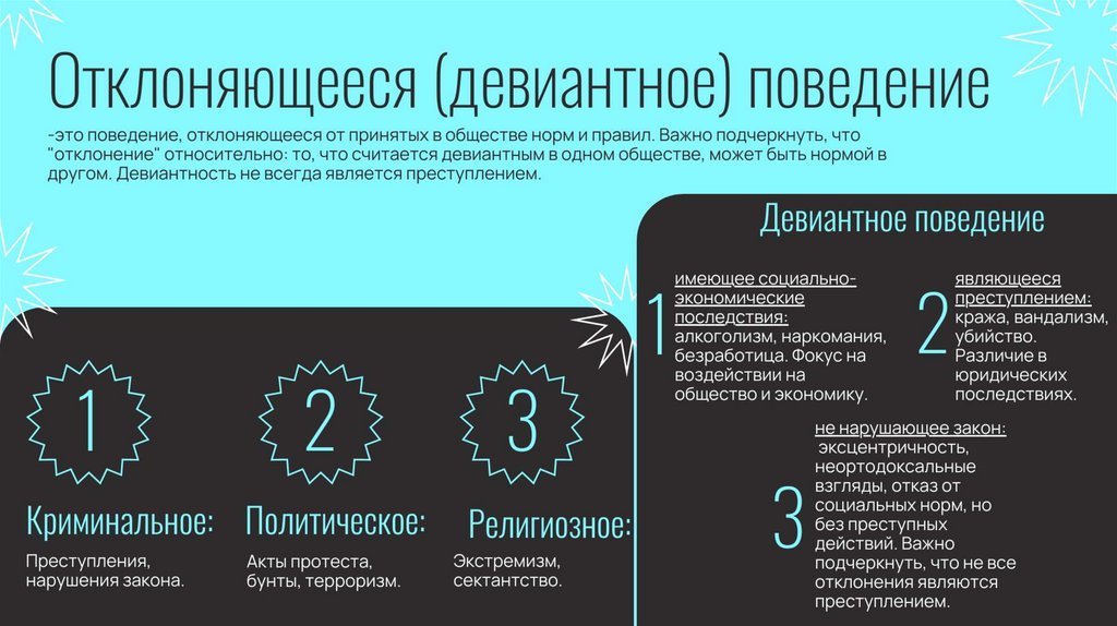 Девиантное поведение. Устойчивое поведение личности, отклоняющееся от общепринятых, наиболее распространённых