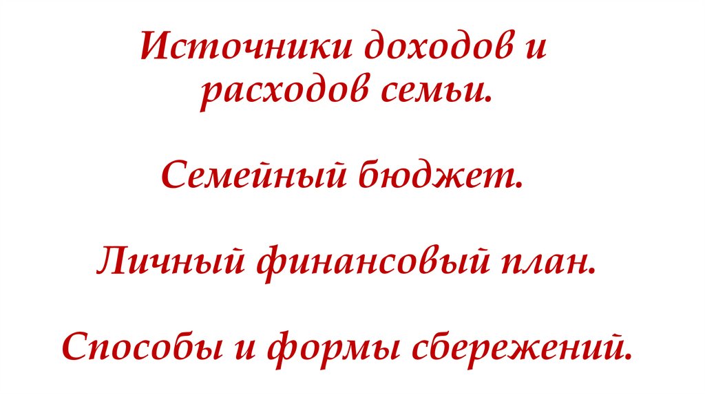 Источники доходов и расходов семьи. Семейный бюджет. Личный финансовый план. Способы и формы сбережений