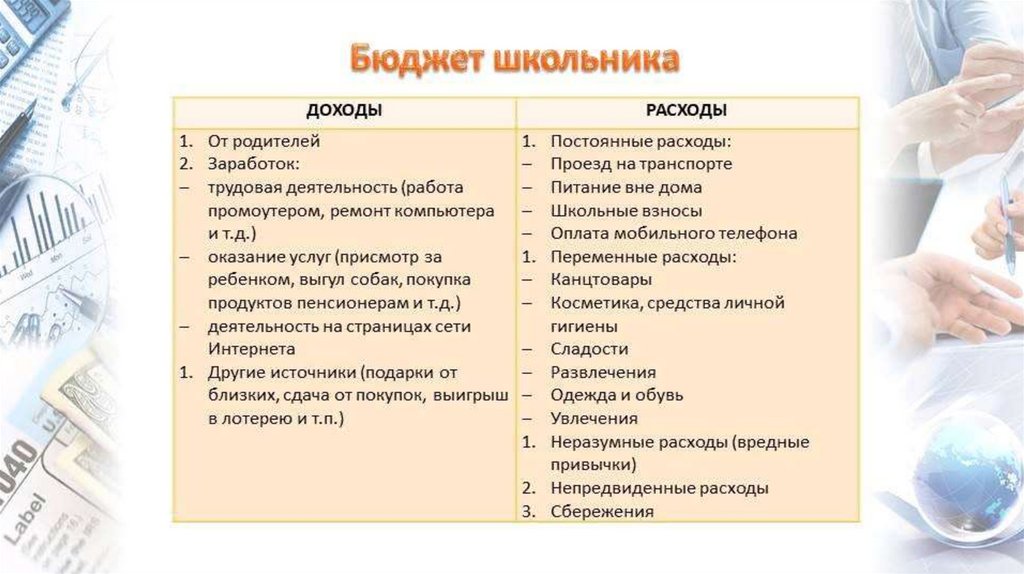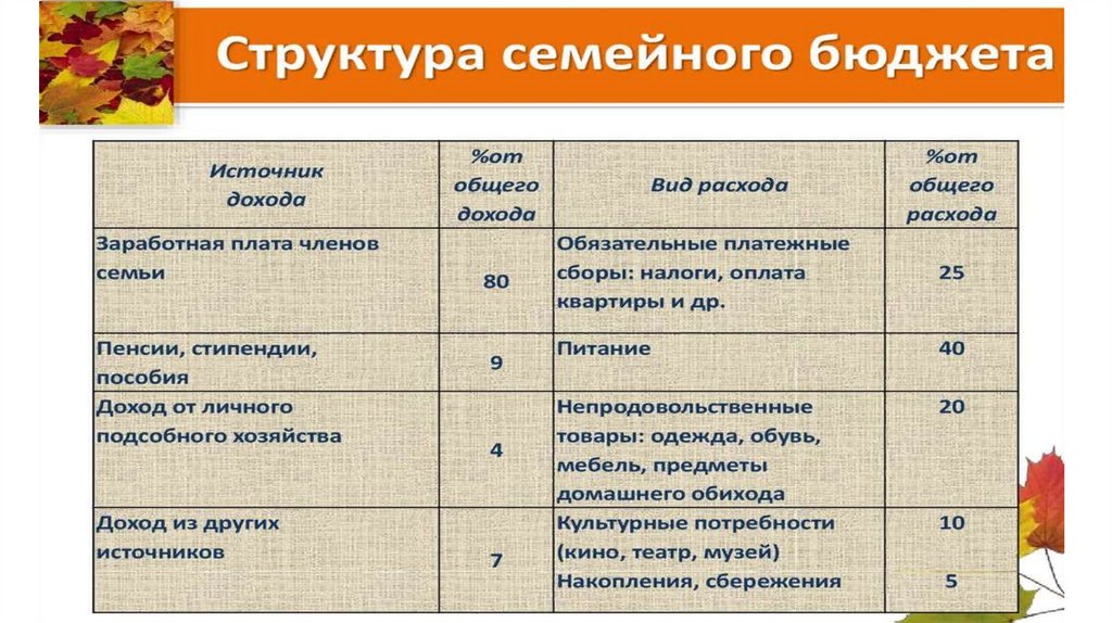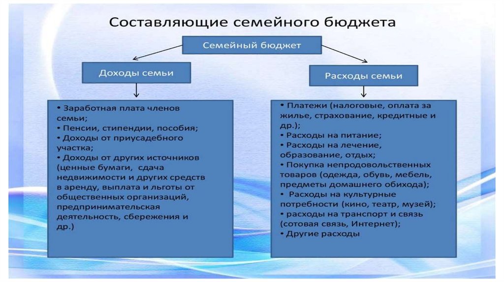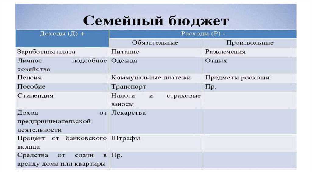 Семейный бюджет. Источники семейных доходов. Доходы и расходы семьи