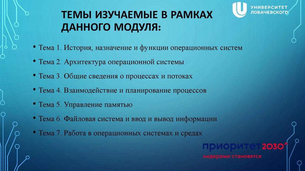 ТЕМЫ ИЗУЧАЕМЫЕ В РАМКАХДАННОГО МОДУЛЯ: