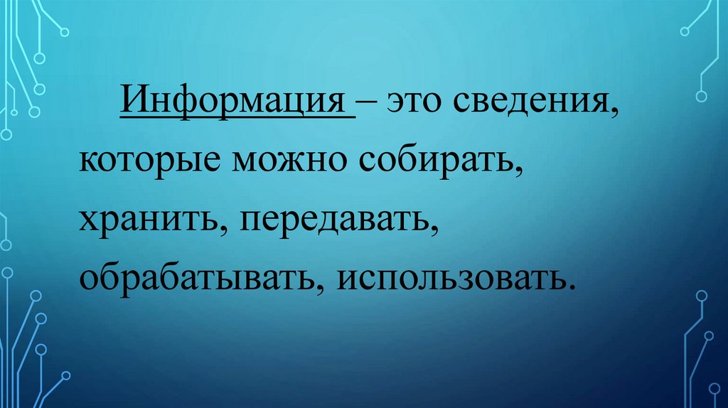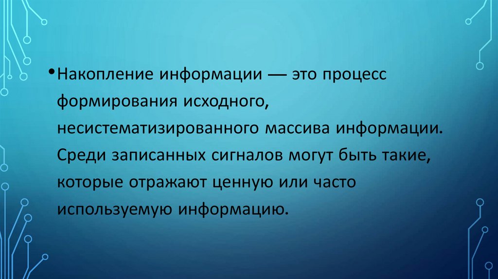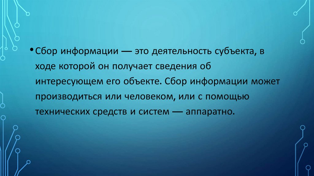 • Сбор информации — это деятельность субъекта, входе которой он получает сведения об