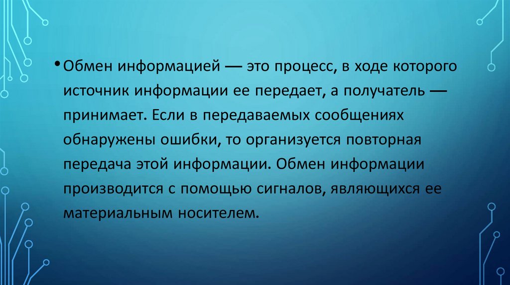 • Обмен информацией — это процесс, в ходе которогоисточник информации ее передает, а получатель —