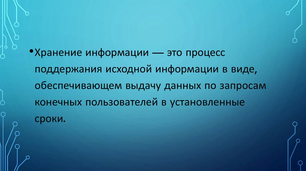 • Хранение информации — это процессподдержания исходной информации в виде,
