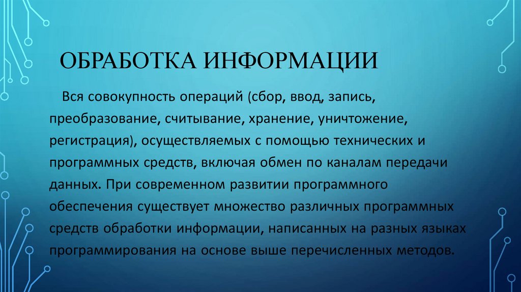 ОБРАБОТКА ИНФОРМАЦИИВся совокупность операций (сбор, ввод, запись,