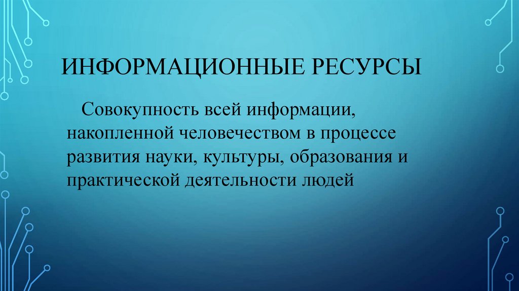 ИНФОРМАЦИОННЫЕ РЕСУРСЫСовокупность всей информации,