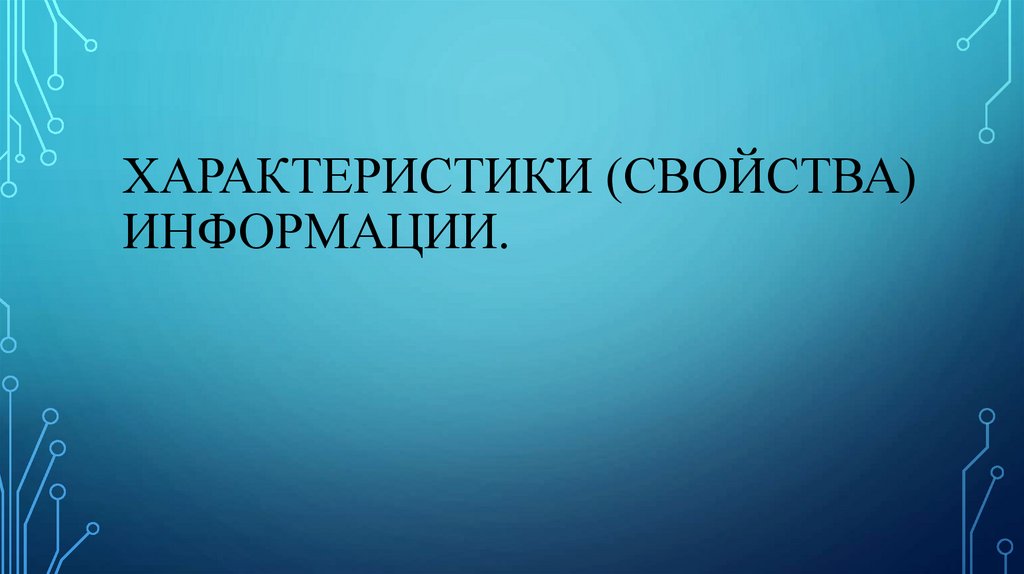 ХАРАКТЕРИСТИКИ (СВОЙСТВА)ИНФОРМАЦИИ.