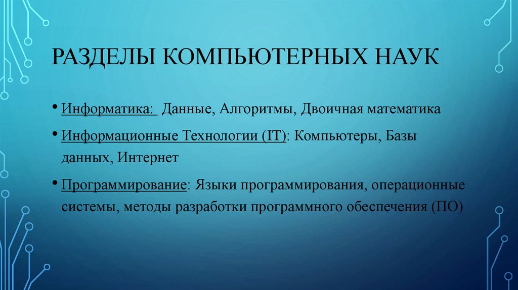 РАЗДЕЛЫ КОМПЬЮТЕРНЫХ НАУК• Информатика: Данные, Алгоритмы, Двоичная математика