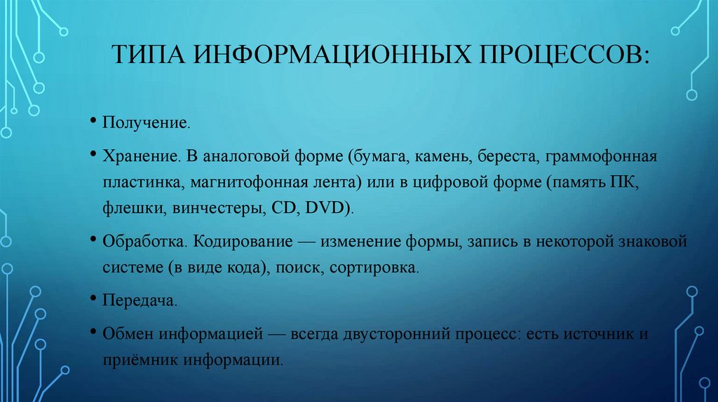 ТИПА ИНФОРМАЦИОННЫХ ПРОЦЕССОВ:• Получение.