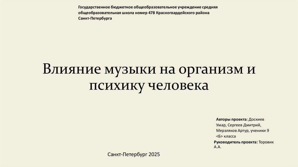Государственное бюджетное общеобразовательное учреждение средняяобщеобразовательная школа номер 478 Красногвардейского района