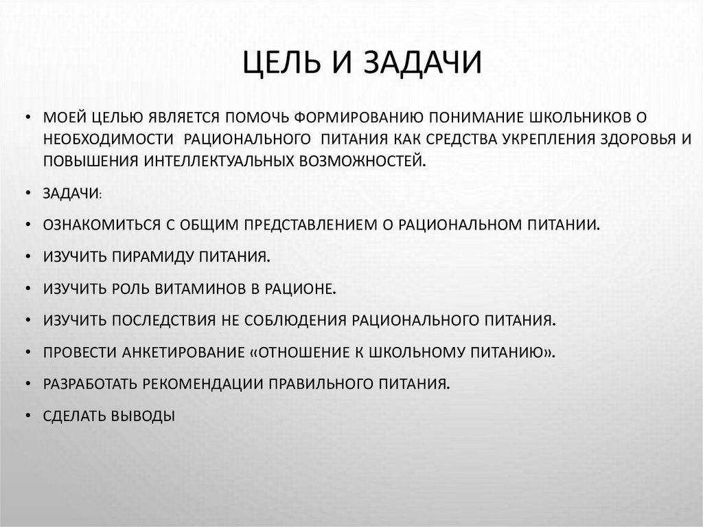 ЦЕЛЬ И ЗАДАЧИ• МОЕЙ ЦЕЛЬЮ ЯВЛЯЕТСЯ ПОМОЧЬ ФОРМИРОВАНИЮ ПОНИМАНИЕ ШКОЛЬНИКОВ О