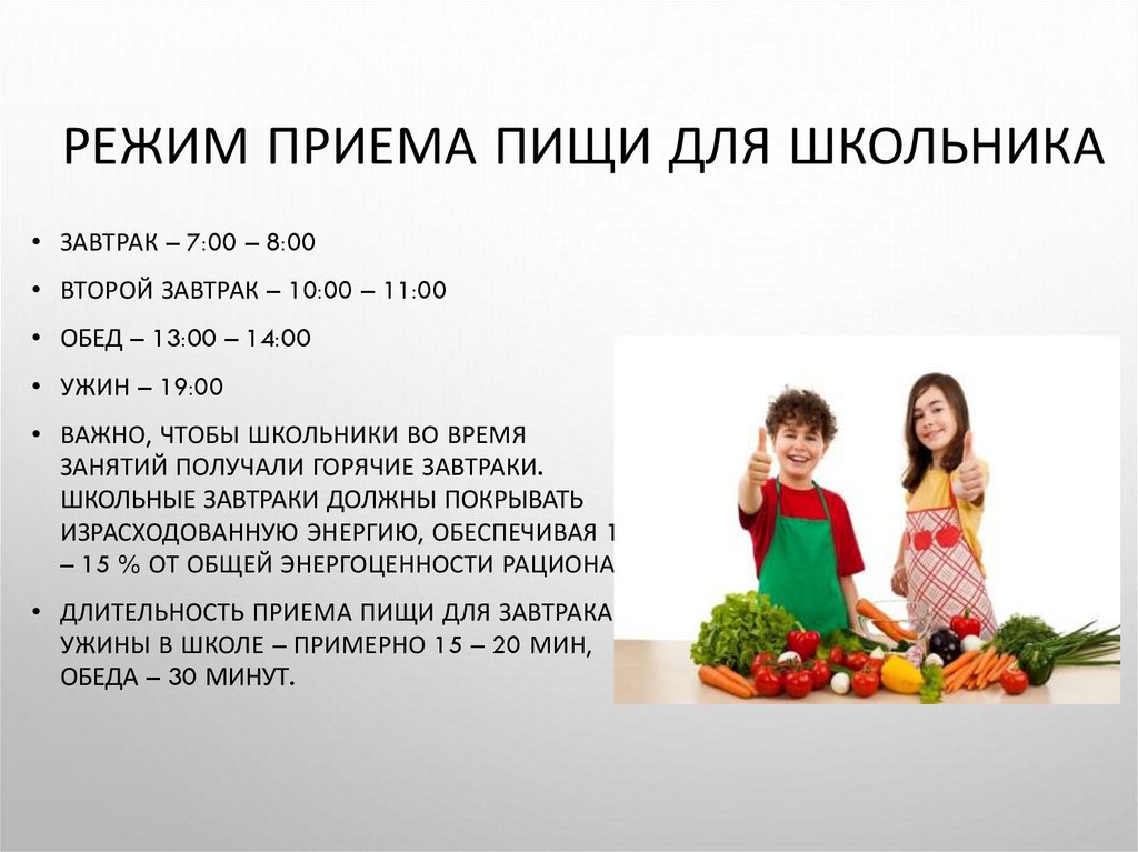 РЕЖИМ ПРИЕМА ПИЩИ ДЛЯ ШКОЛЬНИКА• ЗАВТРАК – 7:00 – 8:00