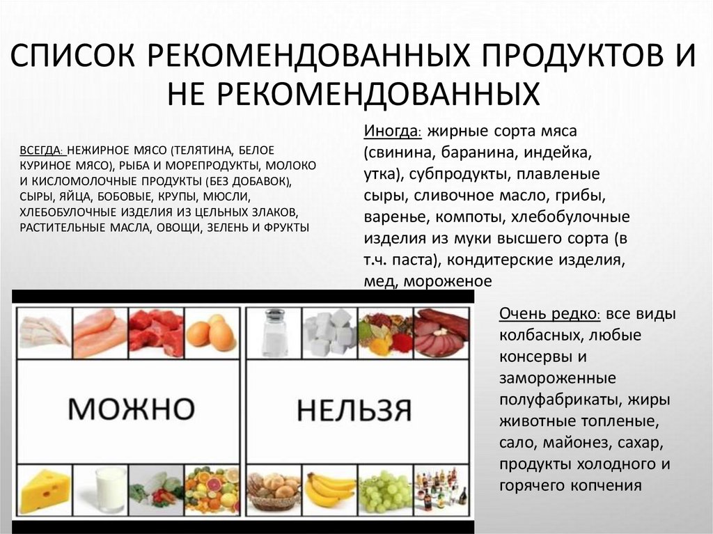 СПИСОК РЕКОМЕНДОВАННЫХ ПРОДУКТОВ ИНЕ РЕКОМЕНДОВАННЫХ
