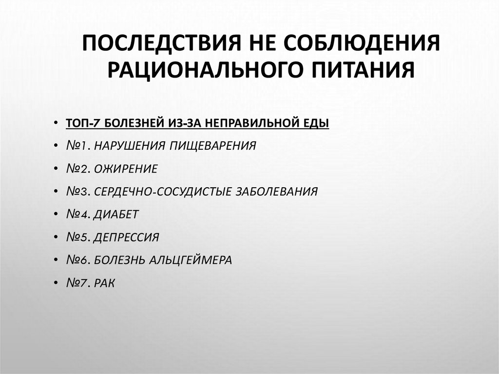 ПОСЛЕДСТВИЯ НЕ СОБЛЮДЕНИЯРАЦИОНАЛЬНОГО ПИТАНИЯ