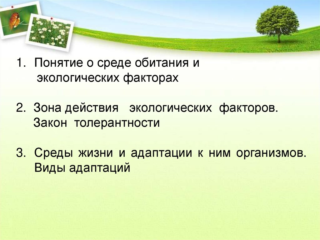 1. Организм и среда обитания. Факторы среды и адаптации к ним организмов