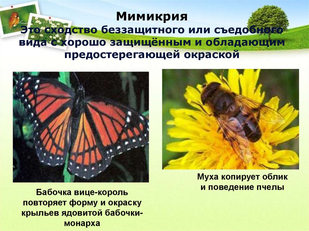106. Мимикрия Это сходство беззащитного или съедобного вида с хорошо защищённым и обладающим предостерегающей окраской