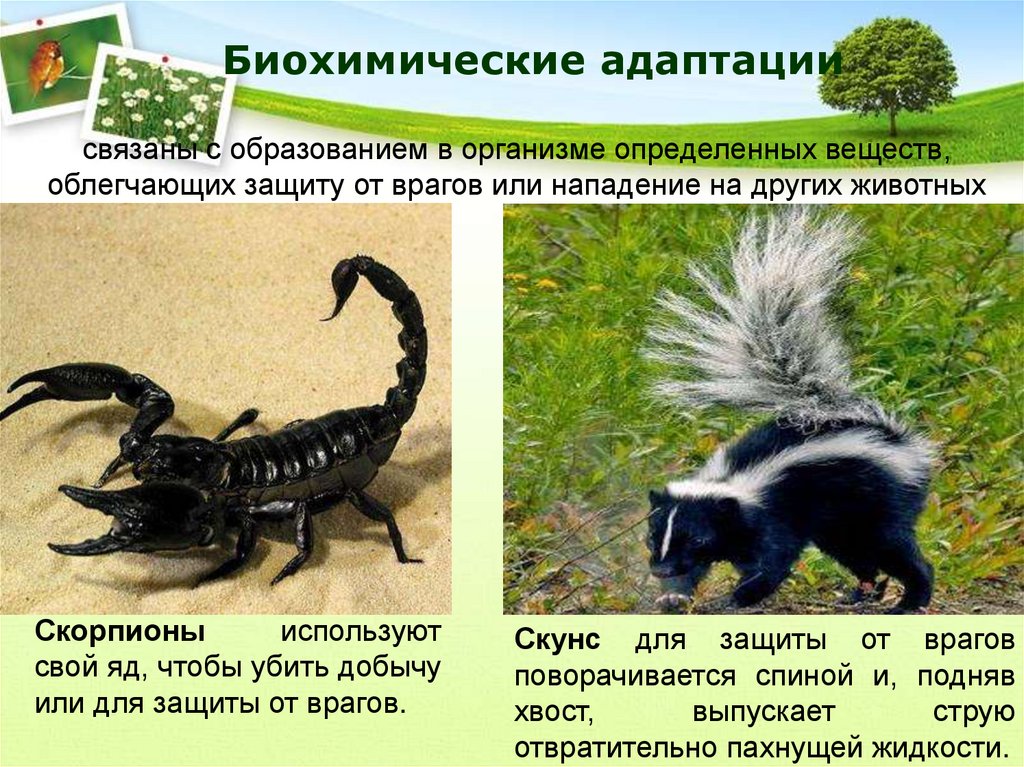 связаны с образованием в организме определенных веществ,облегчающих защиту от врагов или нападение на других животных