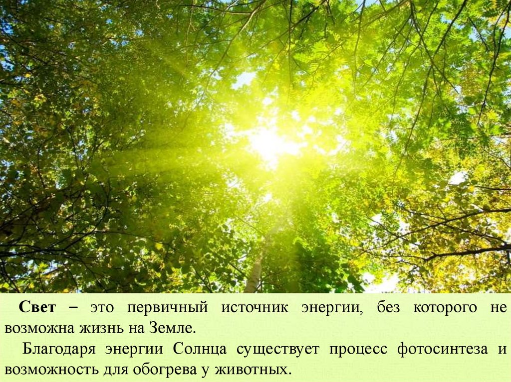Свет – это первичный источник энергии, без которого невозможна жизнь на Земле.