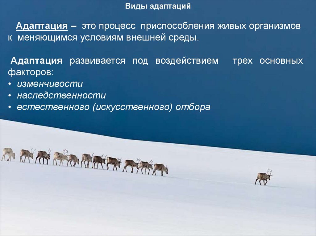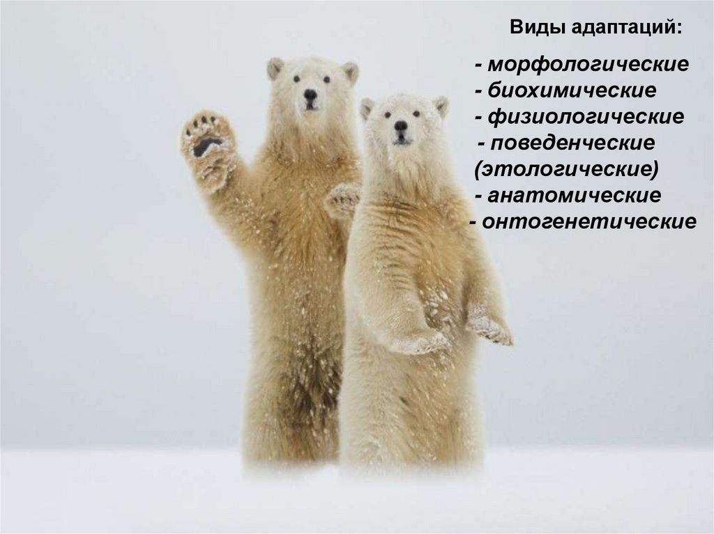 Виды адаптацийАдаптация – это процесс приспособления живых организмов