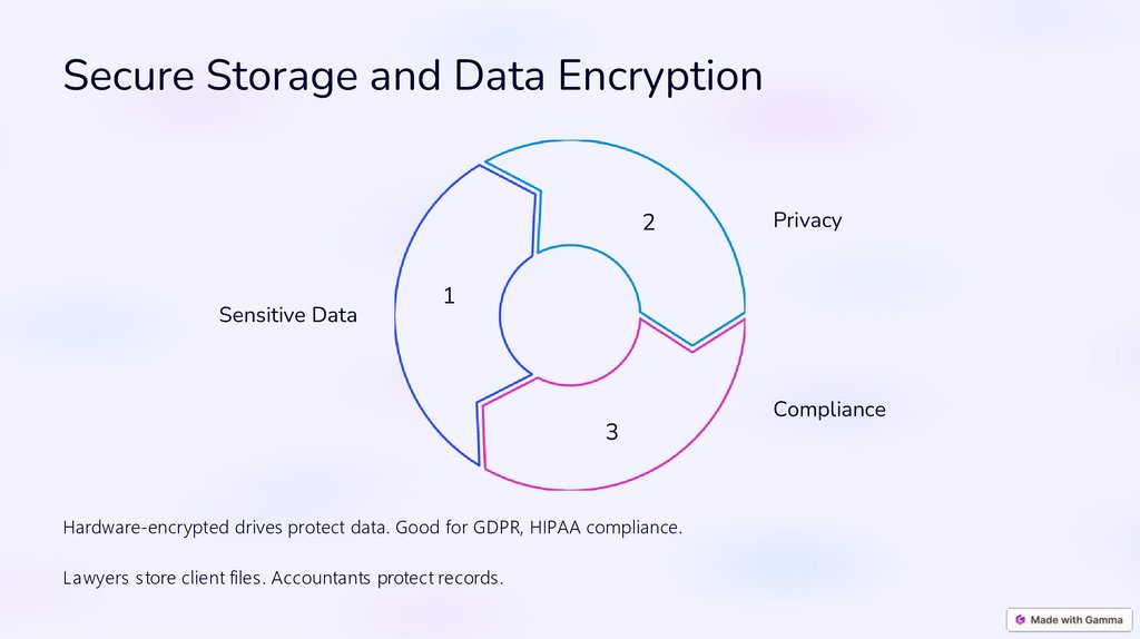 Hardware-encrypted drives protect data. Good for GDPR, HIPAA compliance.