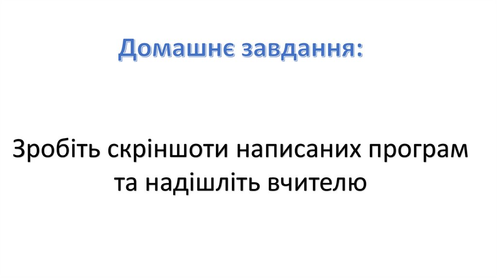 Зробіть скріншоти написаних програмта надішліть вчителю