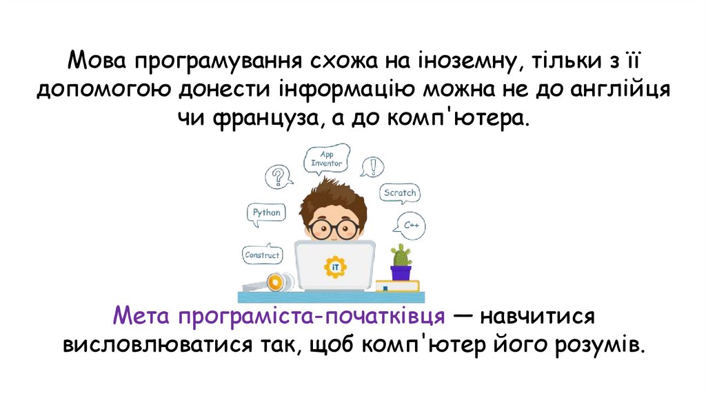Мова програмування схожа на іноземну, тільки з їїдопомогою донести інформацію можна не до англійця