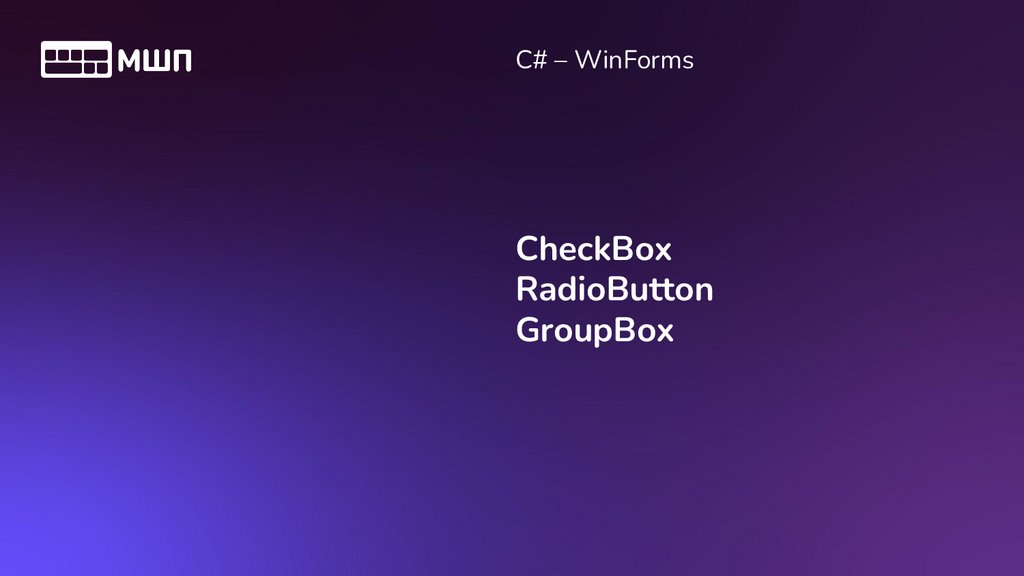Groupbox, checkbox, radiobutton