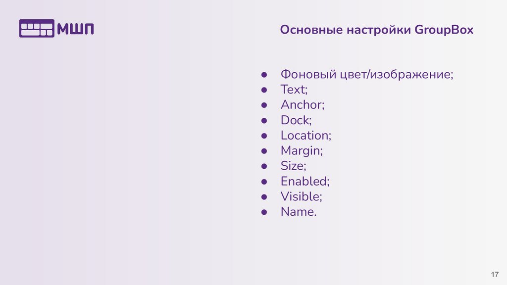 Научимся группировать элементы управления;